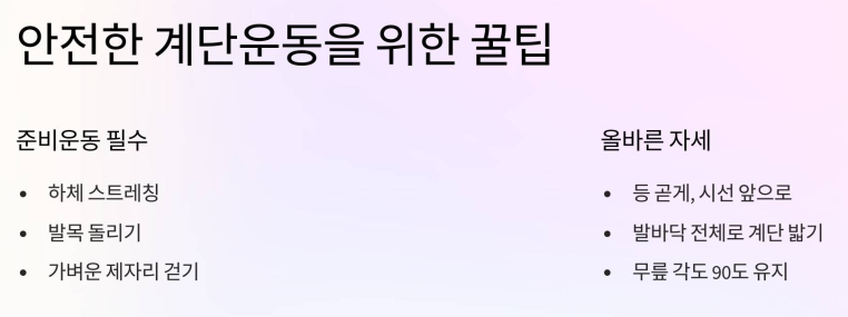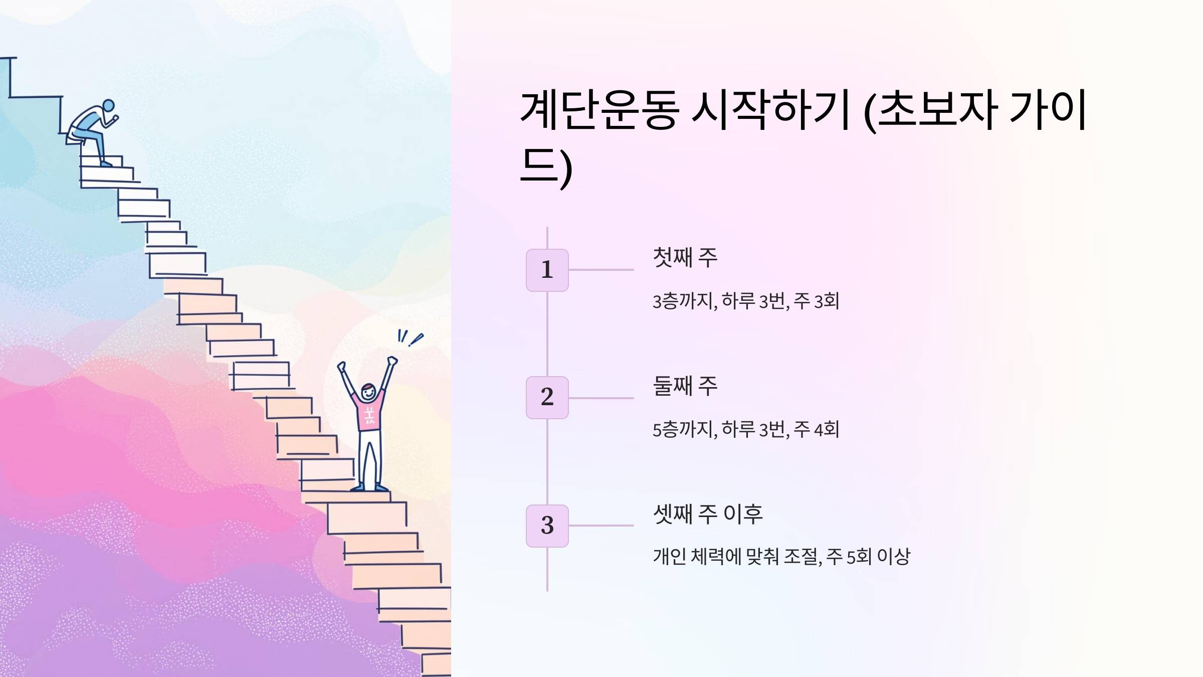 계단운동은 꾸준함만 있다면 누구나 성공할 수 있는 운동입니다. 오늘부터 엘리베이터 대신 계단을 선택해보는 건 어떨까요?