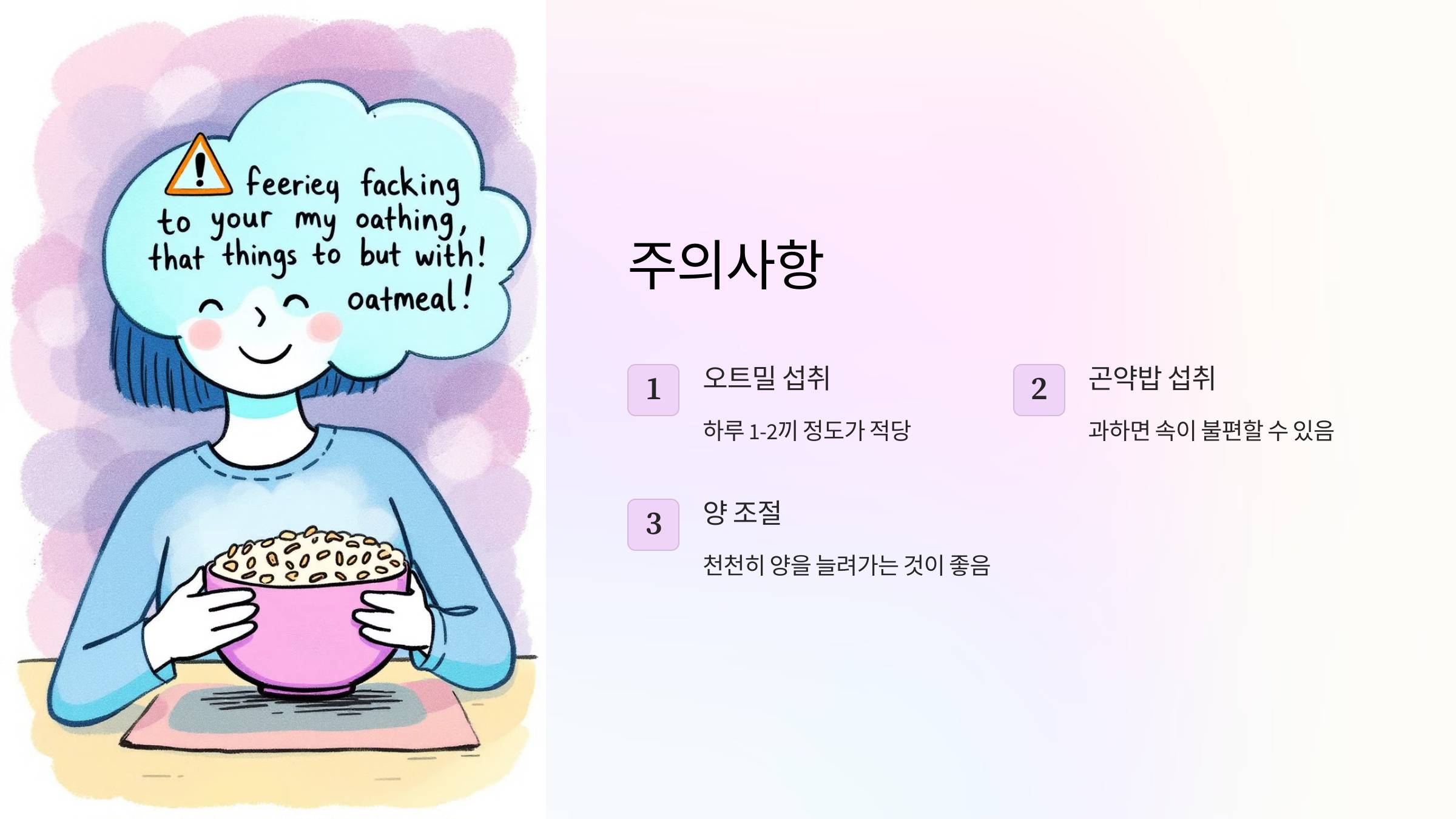 - 오트밀은 하루 1-2끼 정도가 적당해요.