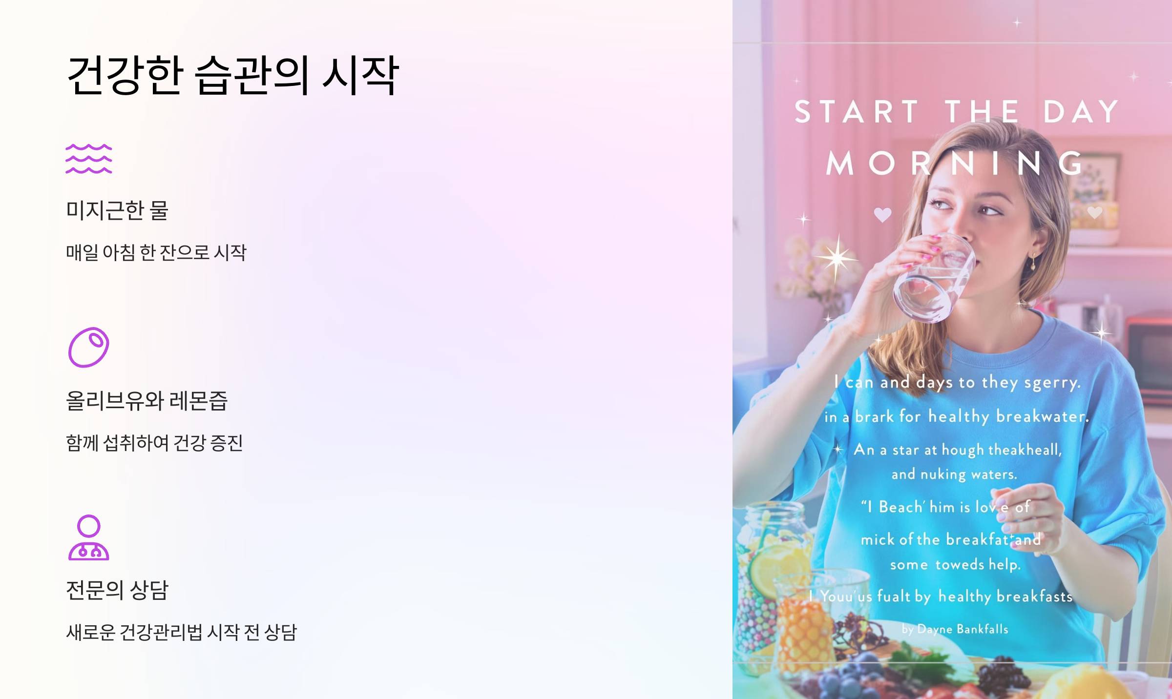 매일 아침 미지근한 물 한 잔으로 시작해보세요.