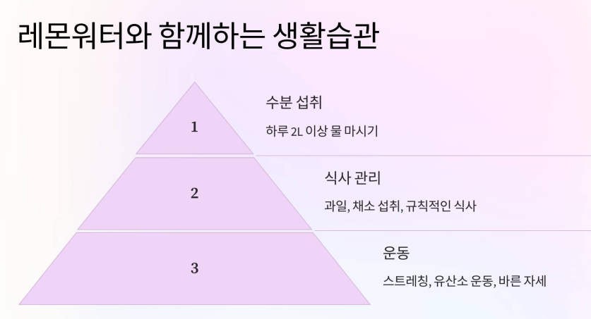 레몬워터만큼 중요한 건 바로 건강한 생활습관이에요! 레몬워터와 함께 꾸준한 루틴을 만들어 보세요.