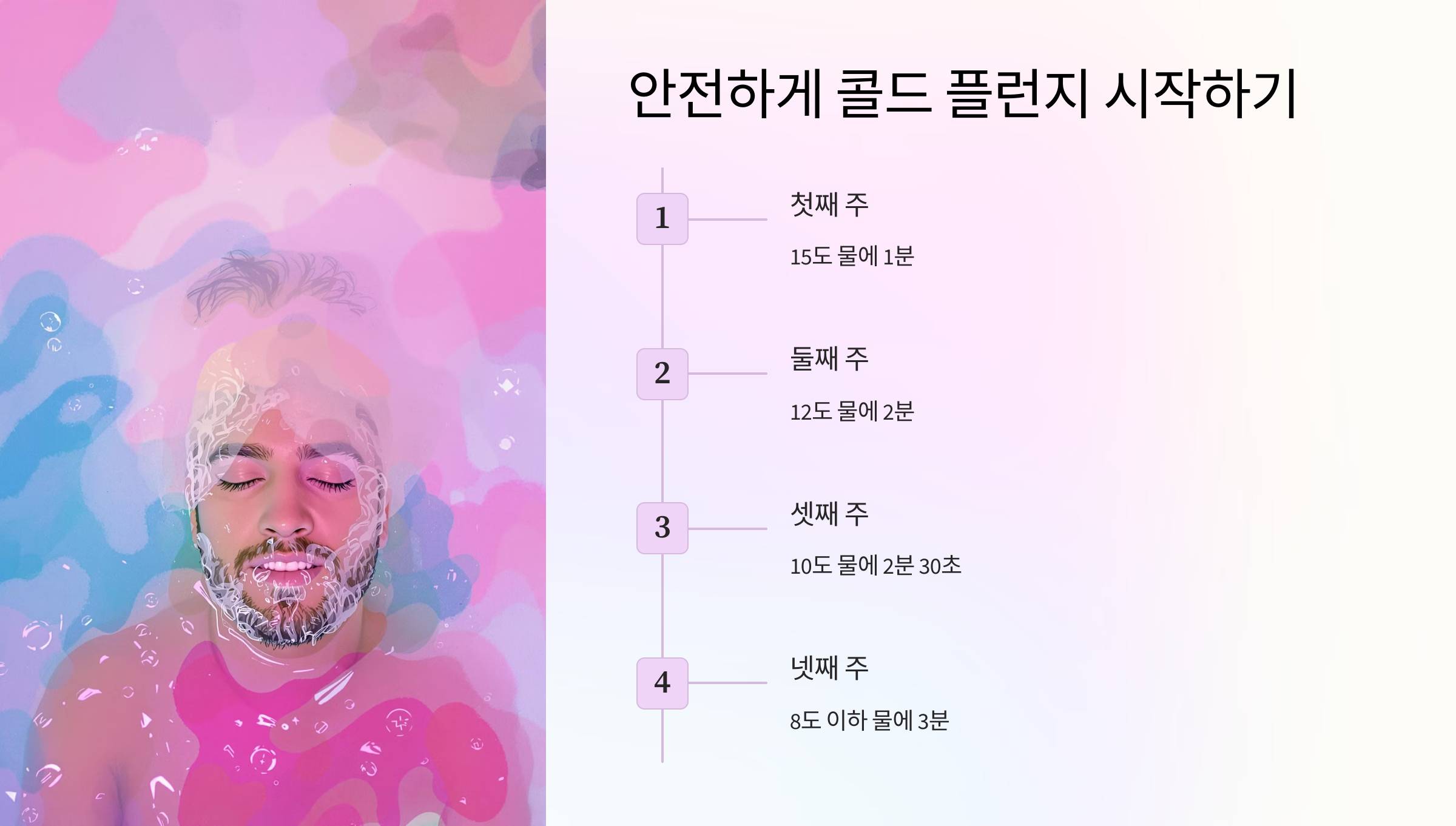 제니는 "처음엔 정말 추웠지만, 이제는 하루의 피로를 풀어주는 리셋 버튼 같아요"라고 말했어요. 더 효과적으로 콜드 플런지를 할 수 있는 몇 가지 팁을 소개할게요.
